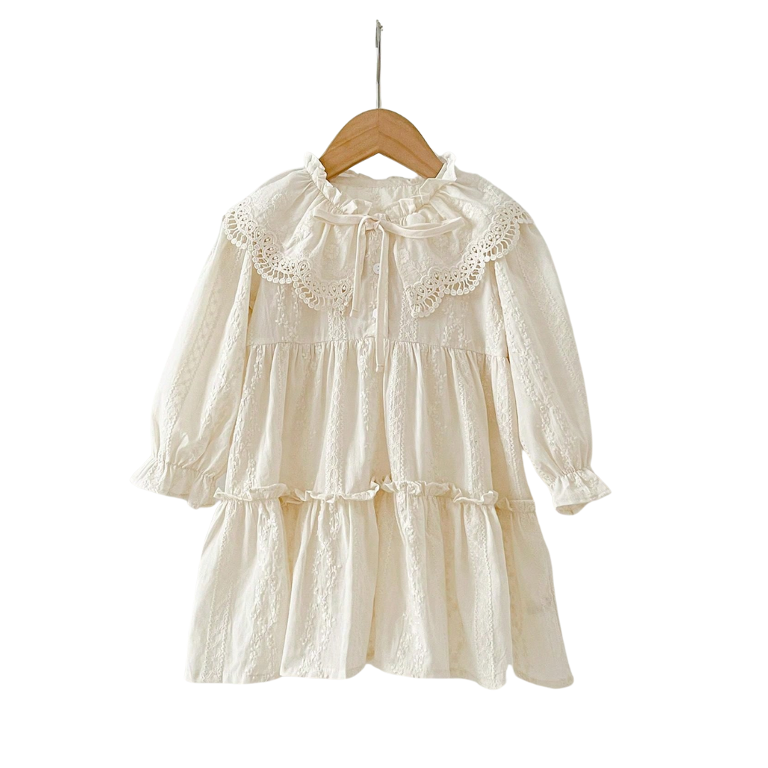 Sukienka Dziecięca z Koronkowym Kołnierzykiem i Długimi Rękawami – Vintage Urok dla Małych Trendsetterów