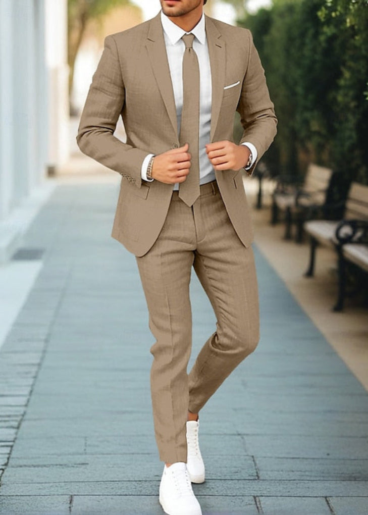 Casualny garnitur 2-częściowy łączy komfort, styl i praktyczność. Niezależnie od tego, czy spędzasz casualowy dzień na mieście, czy relaksującą kolację, ten garnitur zapewnia, że wyglądasz elegancko i czujesz się komfortowo przez cały dzień.